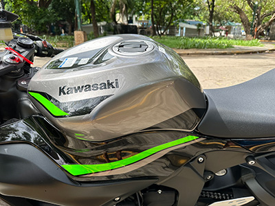 Super sport big bike rentals Ninja ZX-6R was designed for superior performance on track, and on the street. 636 cc. petrol screamer inline 4 engine deliver strong and balanced power at all RPM ranges.