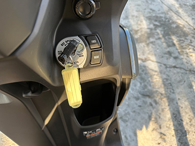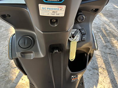 Affordable scooter for rent Yamaha Mio Gravis comes with a wide LED headlamp and hazard lamp switch. Essential full-digital speedometer, a 12V power socket for convenience and a spacious 25-liter under-seat compartment for storing items.